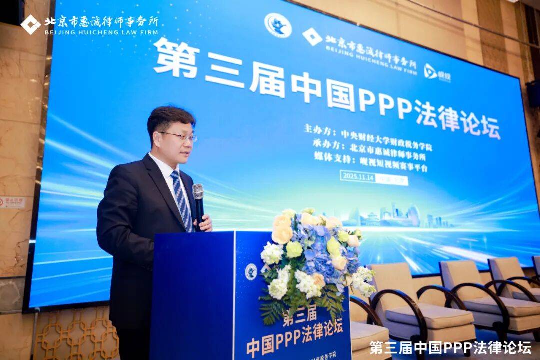 中央财经大学财政税务学院樊勇院长代表主办方致辞。他首先对与会嘉宾表示热烈欢迎,并对承办方北京市惠诚律师事务所的周密筹备表示感谢。樊院长强调,中央财经大学作为我国财经领域的重要人才培养和科学研究基地,始终站在国家财经政策研究和实践探索的前沿。未来,学校将继续发挥学科优势,搭建更高水平的交流平台,推动PPP理论研究与实务操作的深度融合。