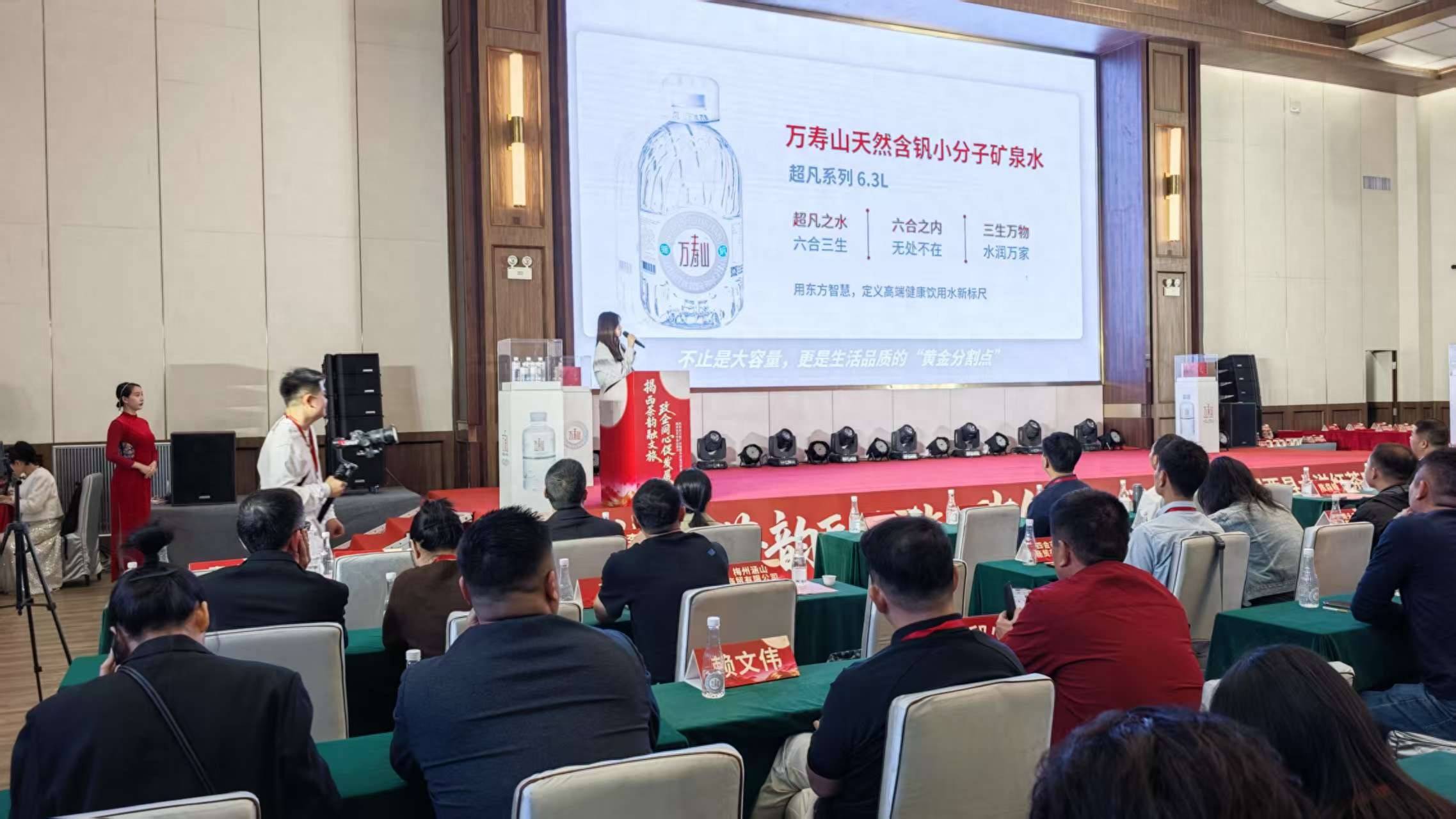 活动现场首先播放的宣传片《因茶兴业,因茶致富——揭西县茶叶省级现代农业产业园》,生动展现了揭西茶产业在“十五五”规划和“百县千镇万村高质量发展工程”推动下的发展成果。现场发布了“大洋红”茶叶、万寿山天然含钒超凡系列6.3L矿泉水三款新品,展现了揭西茶产业的创新成果。“大洋红”茶叶产自海拔800米以上高山,昼夜温差大、常年云雾滋养、富含20多种有益于身体健康的微量元素及营养成分的红黄壤等条件造就茶叶肥厚鲜爽的天然基底,同时,融合非遗炒青技艺与现代创新工艺,与省级科研所合作确保品质,兼具生态优势与匠心品质。万寿山天然含钒超凡系列6.3L矿泉水源自深层天然水源,富含多种人体所需矿物质,采用先进净化工艺,大容量和精美环保包装设计,兼顾了健康、实用和美观。