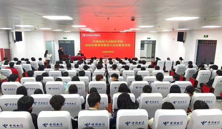 学法明纪守初心,护航青春向未来。为全面加强青少年法治宣传教育,切实提升学生的法律意识、法治观念和自我保护能力,营造平安、文明、和谐的校园育人环境,2026年3月25日晚,河南省驻马店财经学校在图书馆一楼报告厅精心组织开展2026年春季学期学生法治教育专题讲座。学校全体学生通过现场聆听与班级直播同步学习的方式,参与此次法治教育课堂,筑牢青春法治防线。