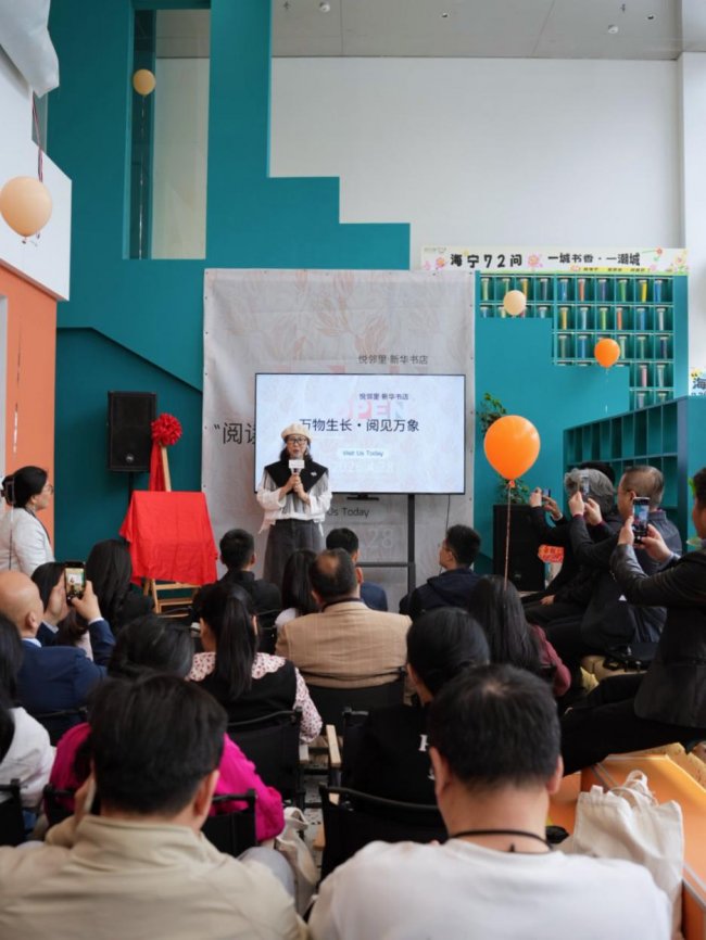 4月28日,位于海宁市海洲街道钱江西路166号的“悦邻里·新华书店”正式开业。这是一家集党群服务中心、新华书店、潮咖啡、读行侠空间站于一体的复合型社区文化空间,以“万物生长・阅见万象”为主题,通过一场“种子雨”仪式、一场文化沙龙、一场志摩诗路行走,向海宁市民推开了一扇有温度、有深度、有诗意的阅读之门。