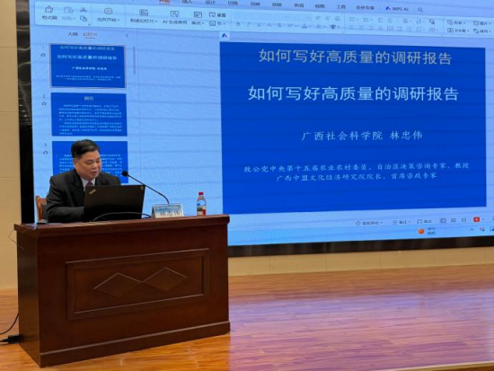 在中共梧州市委统战部、中国致公党梧州市委的大力支持和热情邀请下,林忠伟(广西)产教科咨政联盟团队6-7日赴梧州考察调研,并开展参政议政工作交流活动。林忠伟教授授课的《如何写好高质量的咨政(调研)报告》深入浅出,通俗易懂,满接地气,获得赞誉,听课者纷纷表示获益匪浅。本次参政议政交流活动,初步了解了梧州的优势与产业发展的趋势,对梧州再振雄风充满信心。——咨政联盟团队赴梧州市授课与开展参政议政交流活动侧记