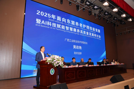 12月19日至21日,在广西壮族自治区总工会、广西壮族自治区民政厅、广西壮族自治区人力资源和社会保障厅的指导下,由广西工业职业技术学院与广西菲到万家健康产业集团有限公司共同主办、林忠伟(广西)产教科咨政联盟协办的《2025年面向东盟养老护理技能竞赛暨AI科技赋能智慧康养高质量发展研讨会》,在广西工业职业技术学院武鸣校区顺利举办。来自国内外27个参赛单位共30支队伍、75 名选手同台竞技,展现养老护理专业风采,共话智慧康养产业发展未来。