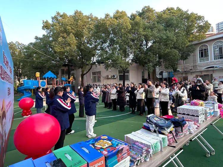 在老师的引导下,家长们牵着孩子们的小手,有序将精心准备的图书、文具、暖衣等爱心物资放到捐赠区。孩子们稚嫩的脸庞上满是认真,小小的手掌传递着沉甸甸的善意。现场循环播放的引导语“小手传大爱,感谢每一个家庭的付出”,让这份温暖更加真切可感。点滴善意汇聚成河,这些物资将跨越距离,送到泌阳县下碑寺马岗小学的同学们手中,为他们带去冬日暖意与成长希望。