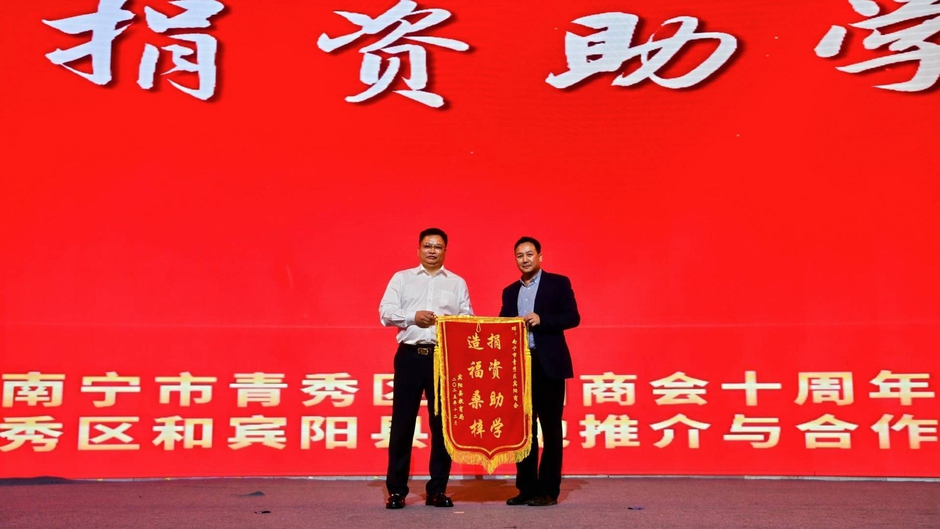 富而思源、反哺社会,是宾商人不变的初心使命。十年来,南宁宾阳商会始终践行社会责任,积极投身公益事业,用实际行动诠释企业家的责任与担当。据不完全统计,商会累计捐款捐物超500万元,其中2024年以来为宾阳县和青秀区教育事业捐资180多万元;上个月向南宁市关心下一代基金会捐赠66万元,专项用于关爱青少年成长;近三年为家乡教育事业捐资超500万元,用实际行动助力“百年大计、教育为本”;积极对接资源,为家乡引进中央资金、乡村振兴资金共计5000多万元,为地方经济社会发展注入强劲动力。