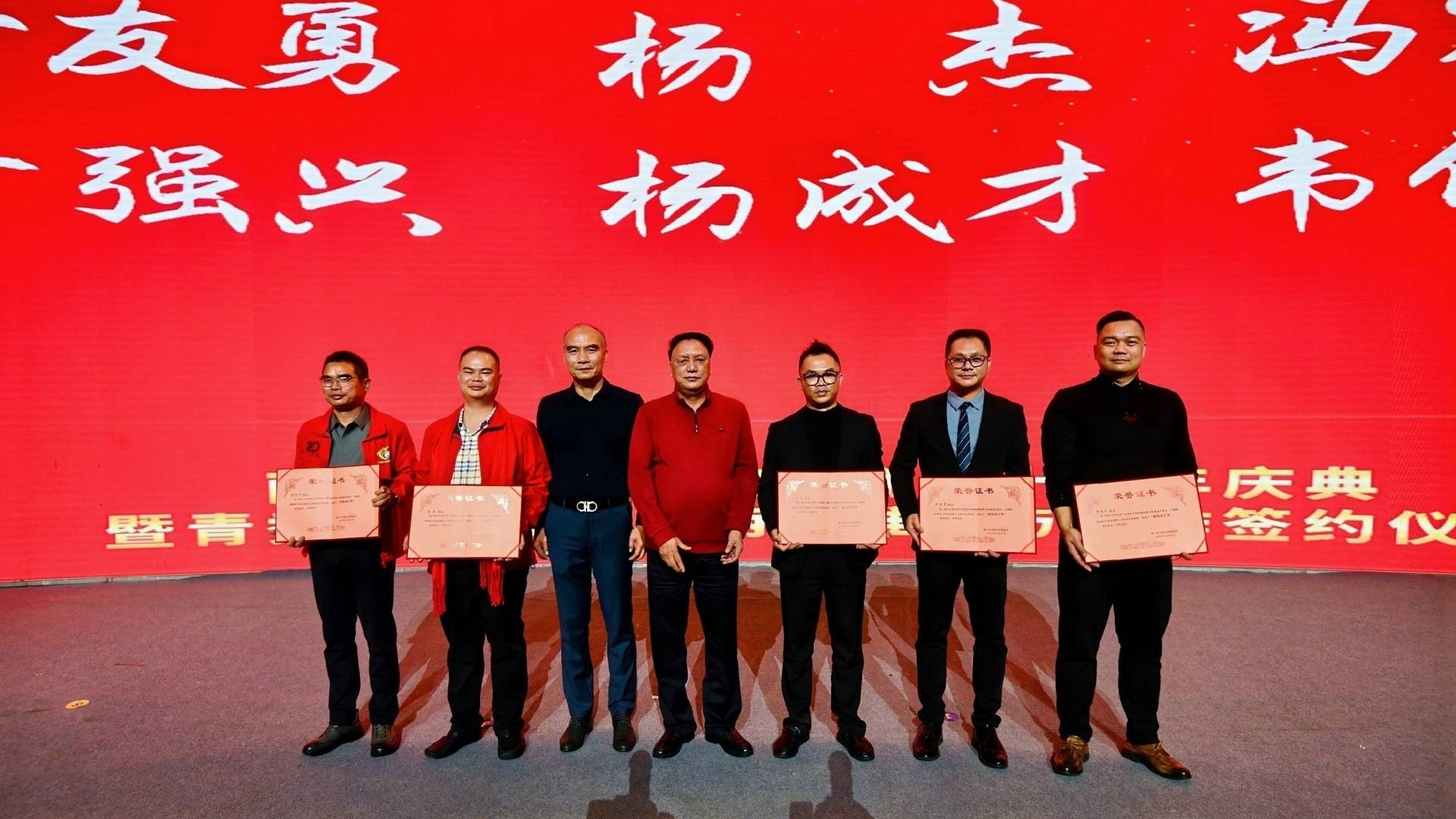 庆典仪式上,广西宾商大厦建设项目、广西深雅医疗科技股份有限公司、广西火利投资有限公司、威尔森环保科技有限公司等重大合作项目签约落地,为南宁宾阳商会发展注入新动能;商会还对十年来为商会建设和发展作出卓越贡献的先进企业和个人进行了隆重表彰,并为新入会的副会长企业及个人会员颁发荣誉证书和牌匾,进一步凝聚了发展合力。