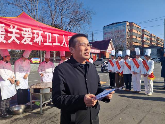 活动现场,平舆县中等职业学校副校长张海涛发表致辞。他表示,环卫工人无论严寒酷暑、风雨交加,始终坚守街头巷尾,用扫帚扫出城市洁净,用簸箕端走生活尘埃,以平凡坚守书写不凡奉献,完美诠释了“劳动最光荣”的深刻内涵。“我校秉持‘厚德强技、服务社会’的办学理念,此次活动既是回馈社会的具体举措,更是一堂生动的劳动教育实践课。”张海涛希望通过这样的行动,让环卫工人吃上热饭热汤,同时带动全社会关注环卫事业,引导学生树立正确劳动观,未来用技能回报社会。随后,他宣布活动正式启动。
