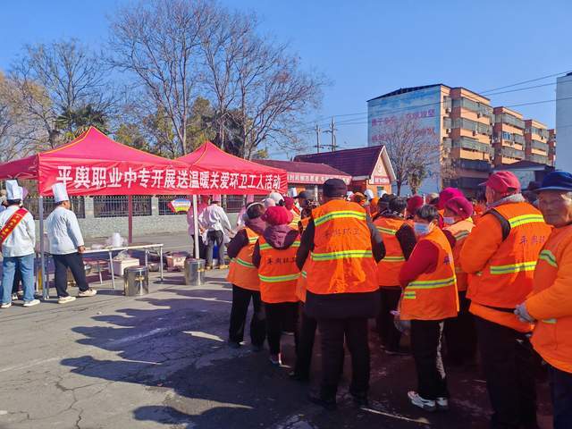 厚德强技服务社会 平舆县中等职业学校爱心餐 情暖一线环卫工人