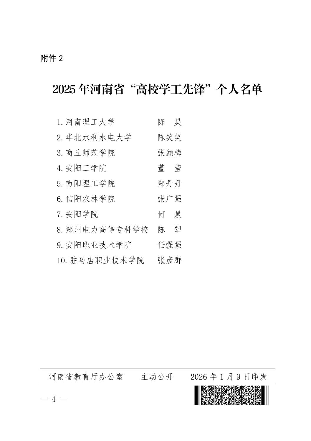 2025年,驻马店职业技术学院张彦群老师成功入选河南省“高校学工先锋”,成为全省学生工作领域的先进典型。这一荣誉是对其长期致力于学生思想政治教育与管理服务工作的充分肯定,也体现了学校在辅导员与学生工作队伍建设方面的扎实成效。学校将持续完善辅导员选拔、培养、发展与激励体系,不断提升学生工作专业化、职业化水平,落实立德树人根本任务。