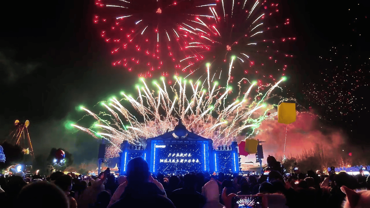 尤其12月31日跨年夜,数万名游客齐聚“星光舞台”前共同倒数迎新。倒计时归零的瞬间,绚烂的烟花如同花朵在夜幕中层层绽放,与缓缓升空和承载着美好愿望的孔明灯交相辉映,场面壮观而温馨,欢呼声响彻园区,为2025画上圆满的句点。