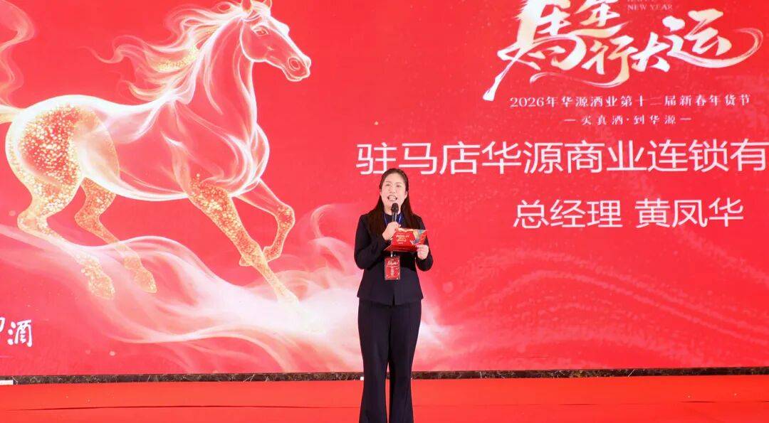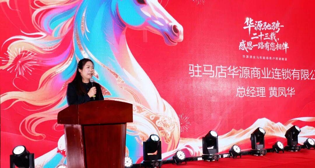 华源酒业总经理黄凤华在致辞中,她首先对华源的新老客户表示热烈的欢迎与诚挚的感谢,此次年货节精心筹备多元品类,既是为大家送上新春优选,更是回馈多年来的信赖与支持,华源酒业年货节连续十二年的举办,就是为了让消费者拥有到华源一站式采购的全方位、低价位的促销平台,真正的实现华源“无套路、真让利”的经营宗旨。同时祝愿大家在活动中满载而归,度过一段欢乐的时光。黄总的致辞温暖恳切,赢得了现场客户的阵阵掌声。